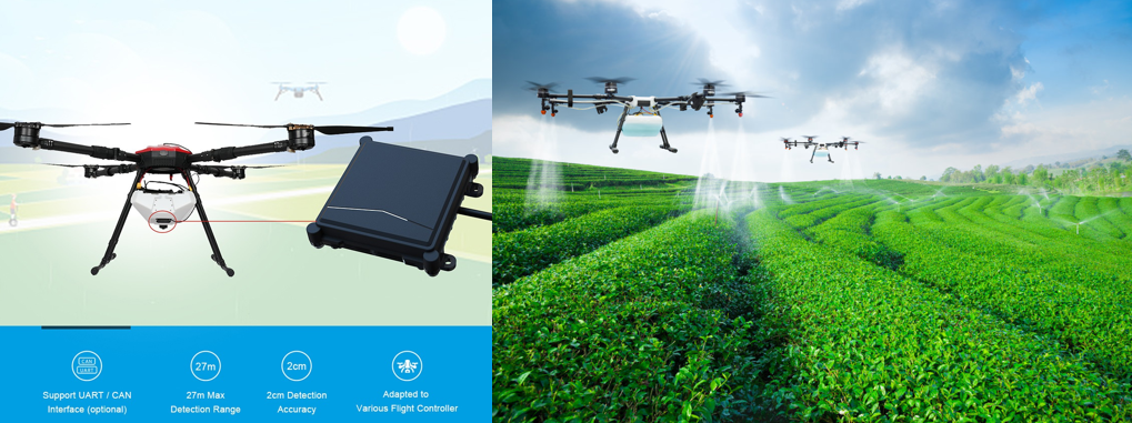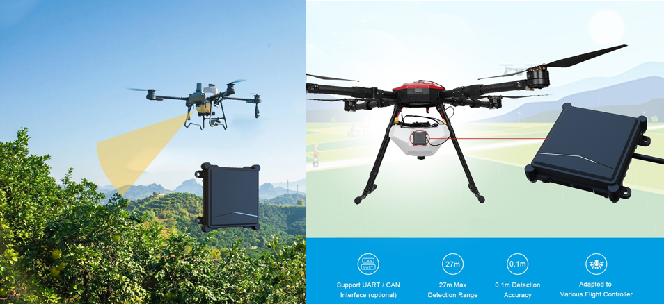 There are two types of mmwave radar sensing in agricultural spraying drones. The altimeter radar makes sustainable flying height to realize the effective spraying.